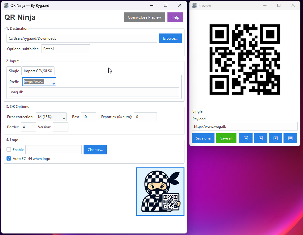 QR Ninja is different its a Free Offline QR generator.